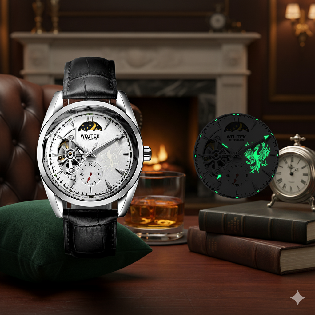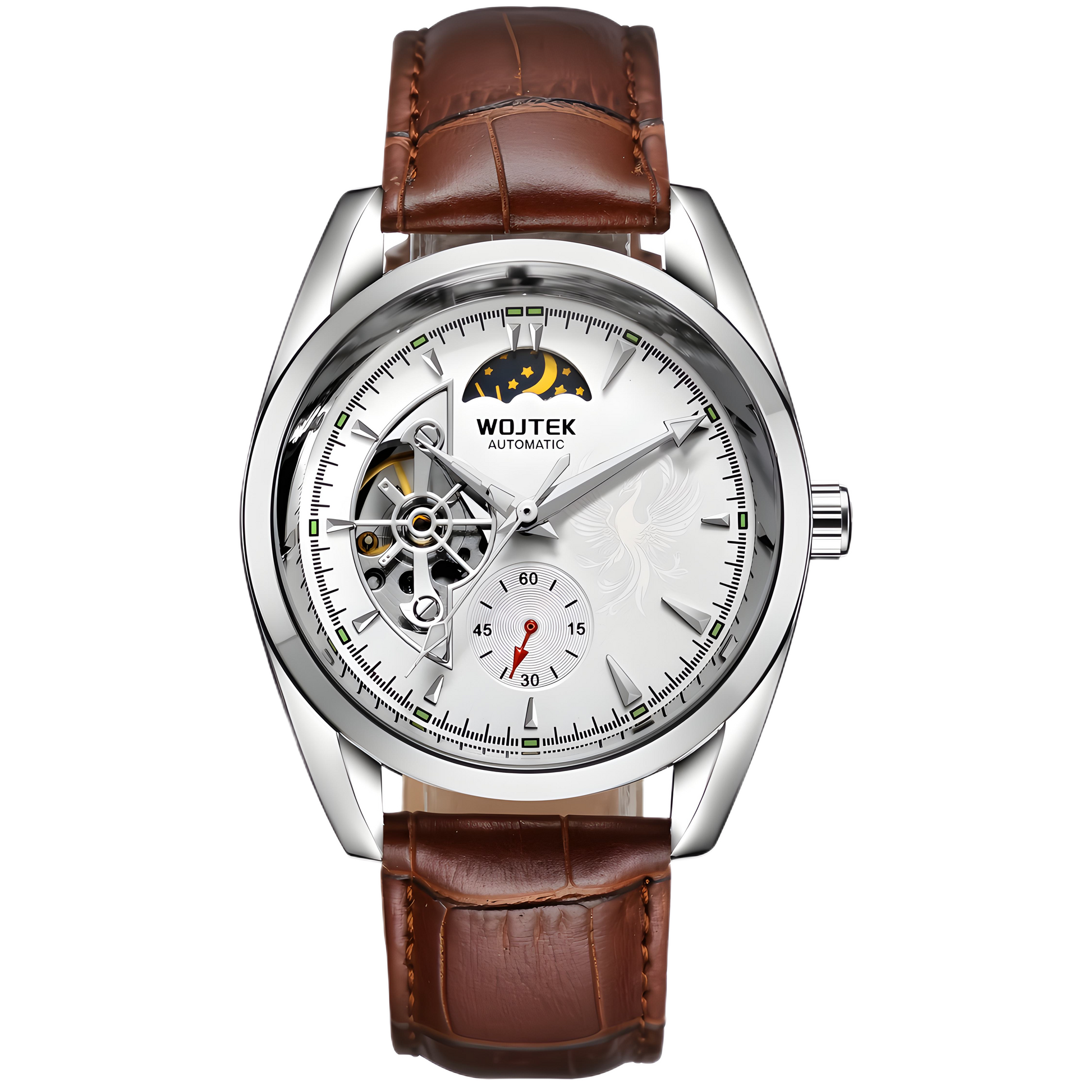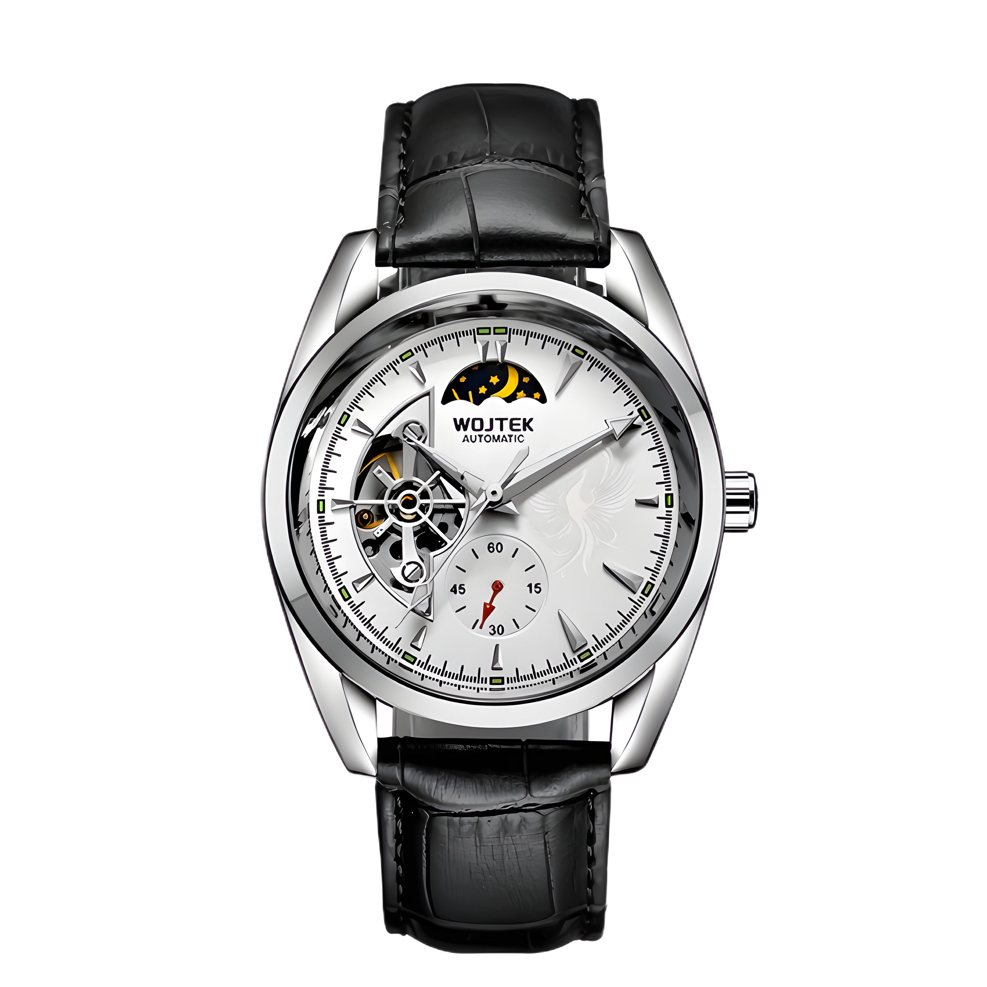 This watch is powered by a self-winding automatic movement — no batteries, no charging, just the pure mechanics of precision engineering. As you move, your natural wrist motion winds the mainspring, keeping the watch running effortlessly day after day.