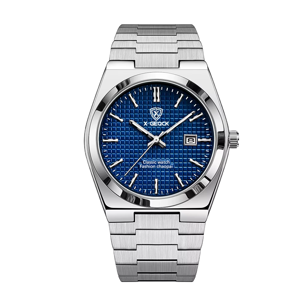 With a stainless steel case, mineral-glass dial window, and water-resistance rated at 3 BAR (splash resistant), this watch blends durability with sophistication. The 41.5 mm case and 12 mm thickness give it a bold presence without being overly bulky.